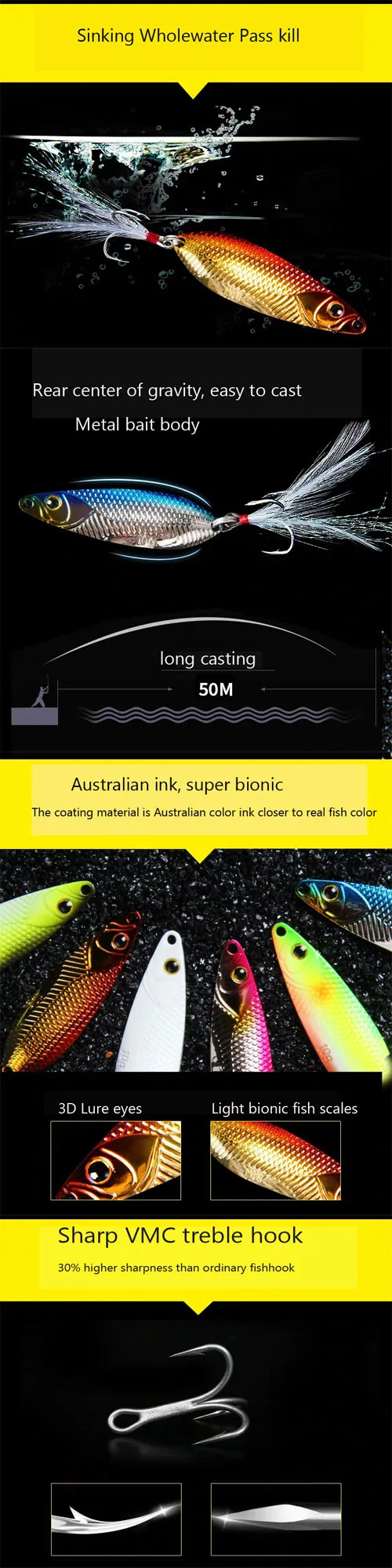 LUTAC-señuelo de pesca de alta calidad, cuchara clásica, longitud 46mm, peso 7g
