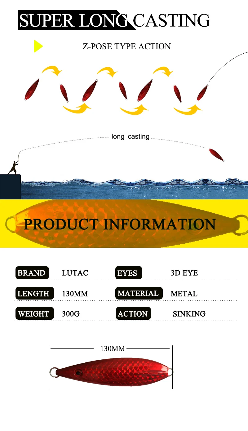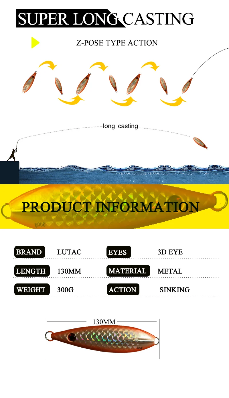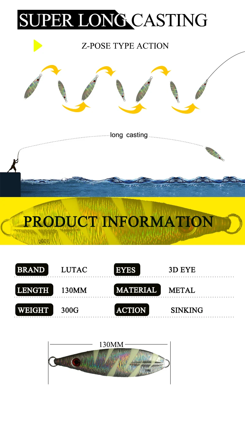 LUTAC-señuelo de pesca clásico Noctilucence, longitud de pez 130mm, peso 300g, alta calidad