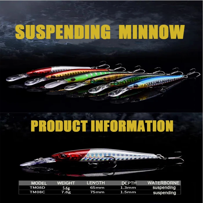 LUTAC-señuelo de pesca clásico, pez pequeño de alta calidad, 75mm de longitud, 7,8g de peso
