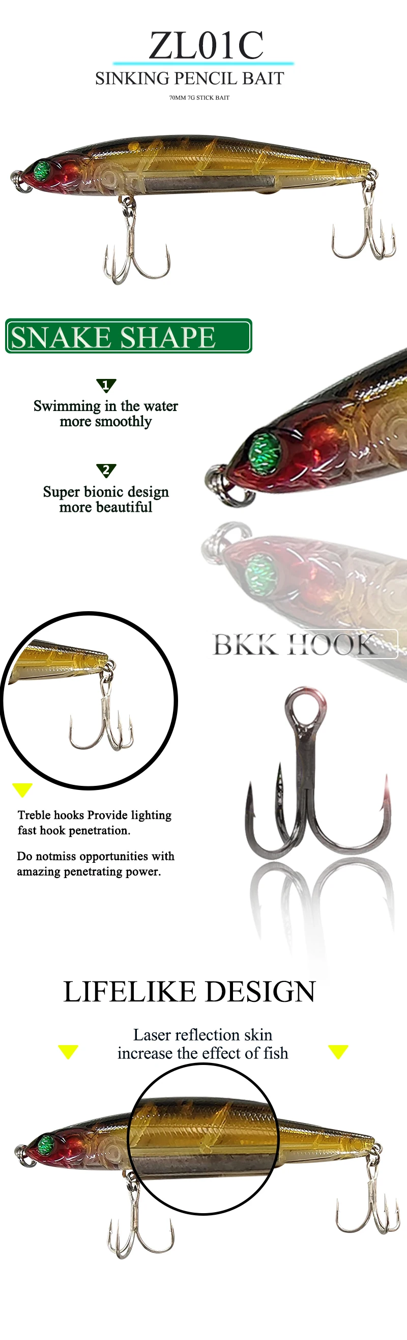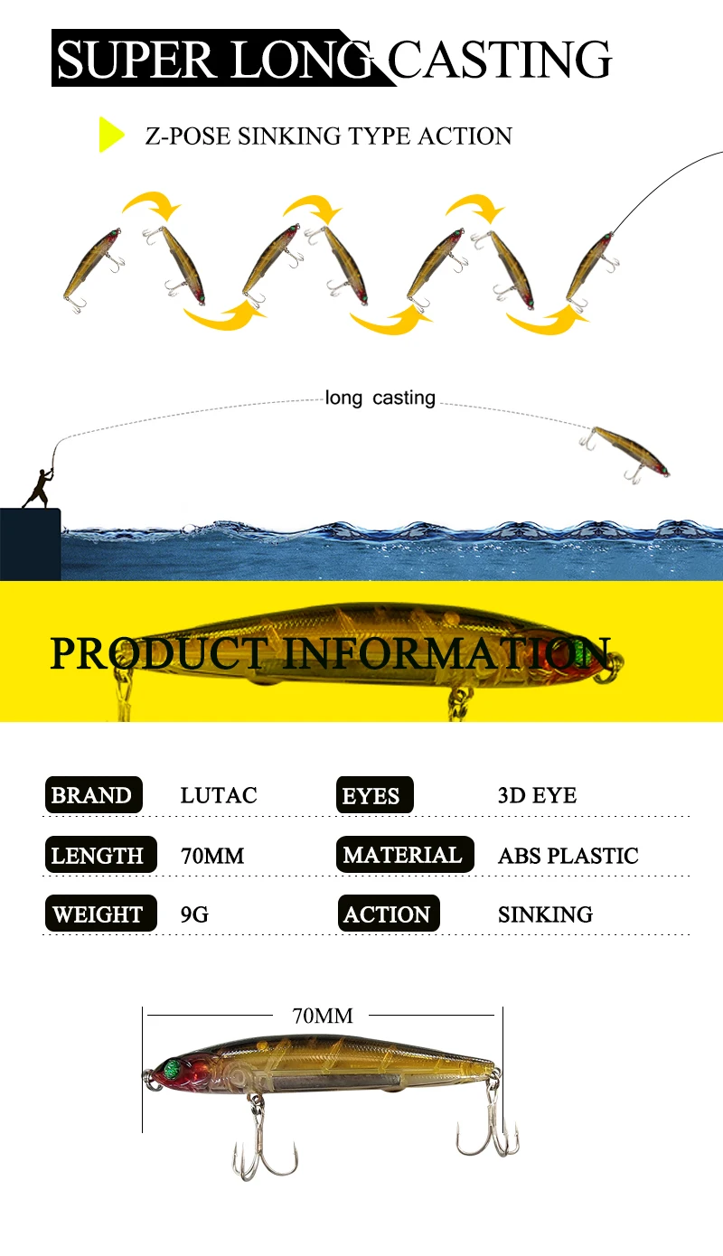 LUTAC-señuelo de pesca con lápiz, longitud 70mm/80mm, peso 7g/15,5g, 5 colores, pesca con plomo