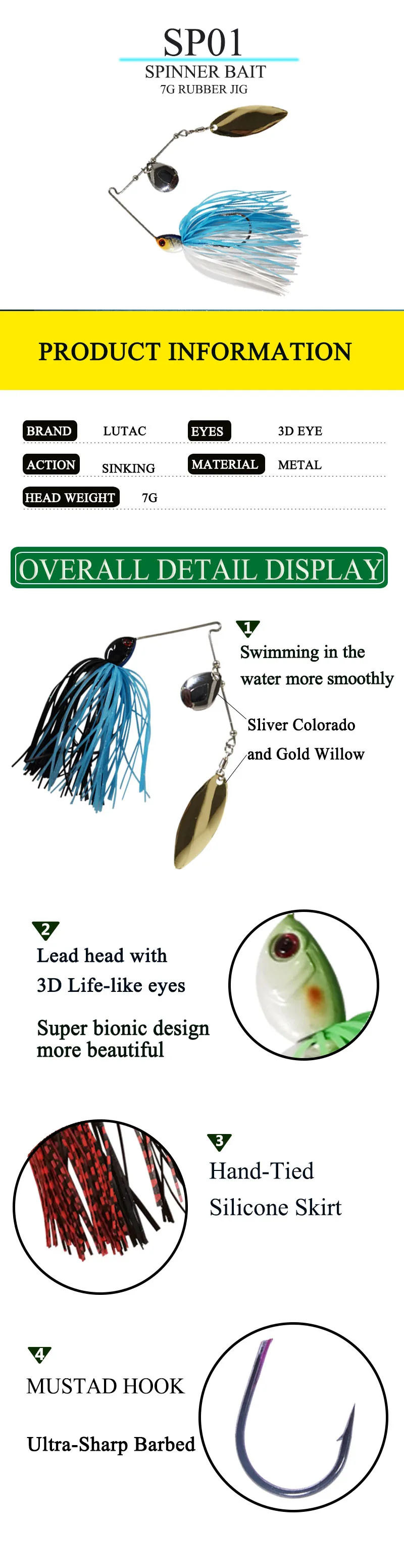 LUTAC-señuelo de pesca de Metal, plantilla de goma de alta calidad, ojos 3D, 21g, 5 colores
