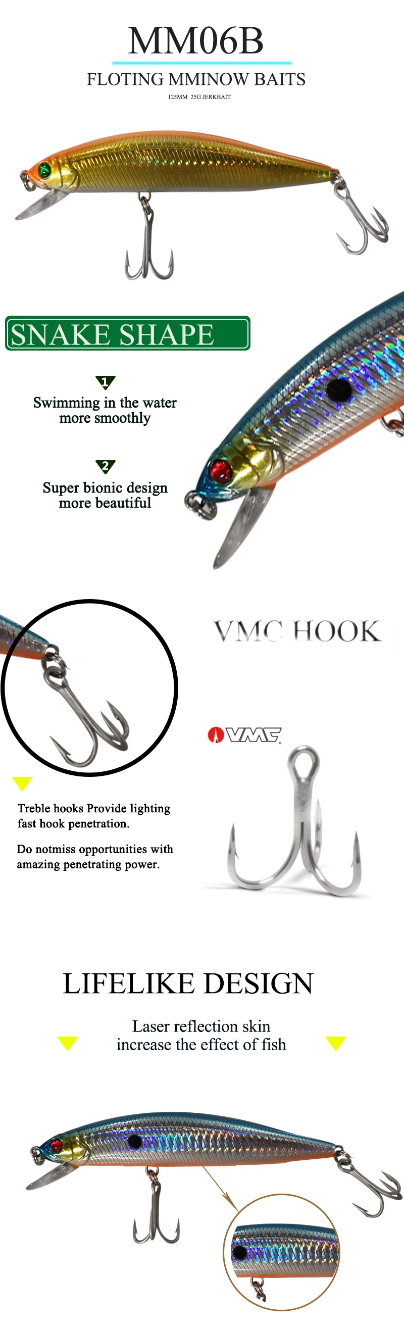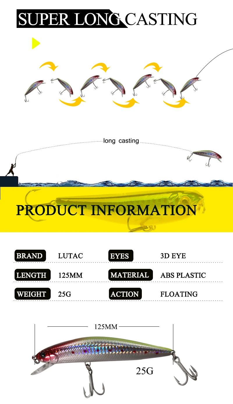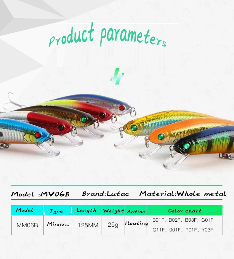 LUTAC-señuelo de pesca Minnow de alta calidad, longitud de 125mm, peso de 25g, ocho colores