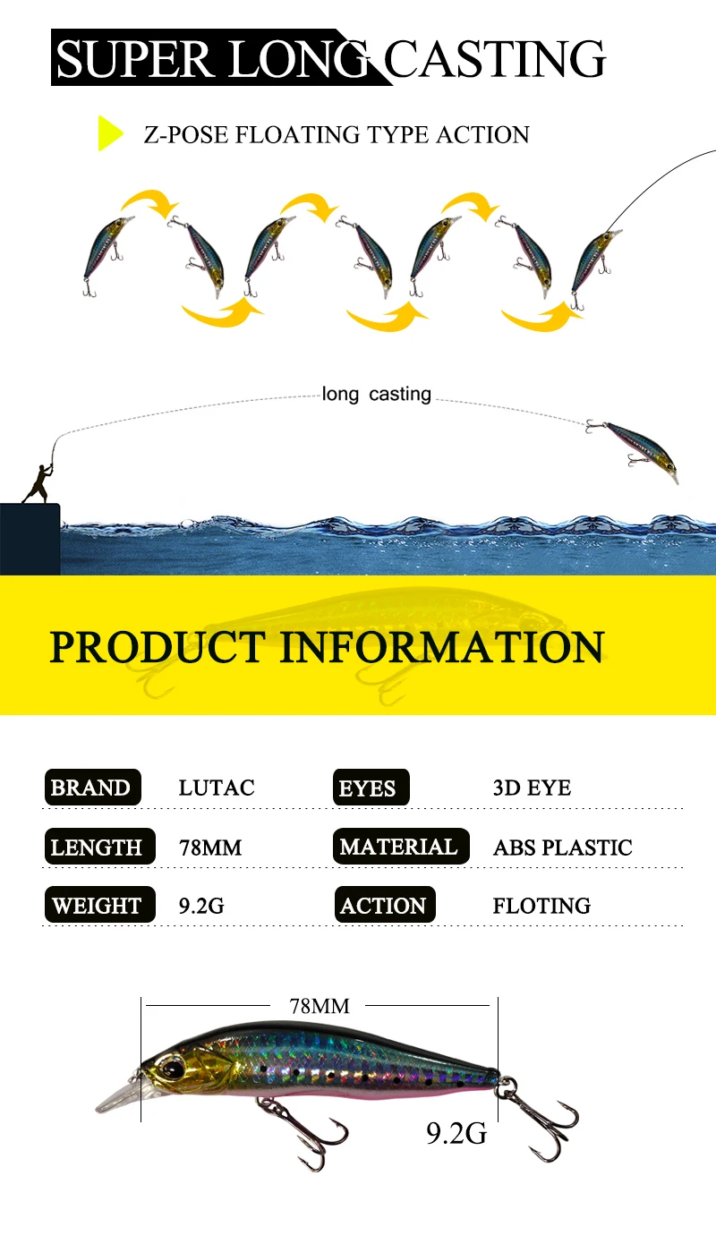 Lutac nuevo señuelo de Pesca Minnow cebos señuelo 78mm 9,2G Vinilos de Pesca accesorios de Pesca gran oferta más barato