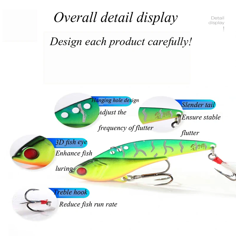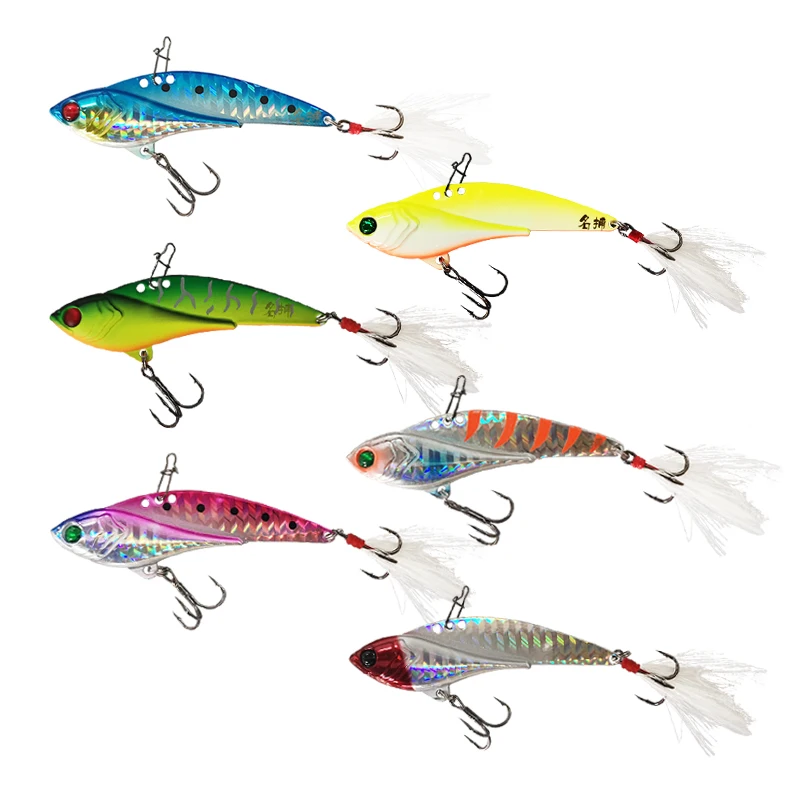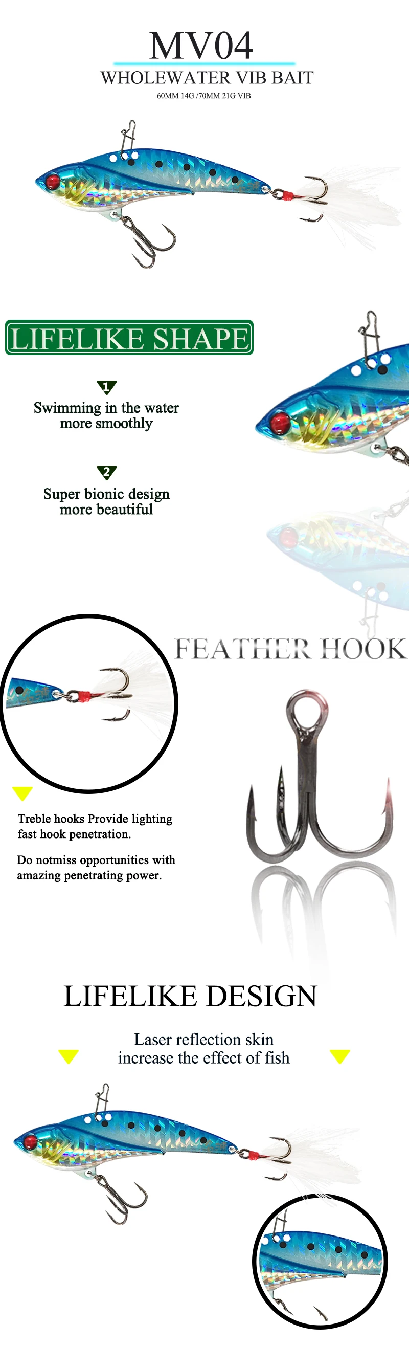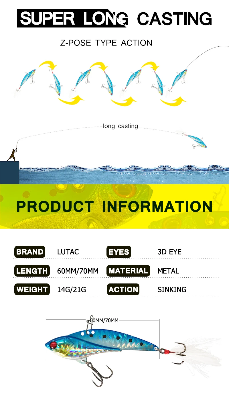 Señuelos DE PESCA DE Metal Lutac 70mm 21g señuelo de vibración de hundimiento de agua salada con anzuelos de plumas cebo VIB para pesca de lubina