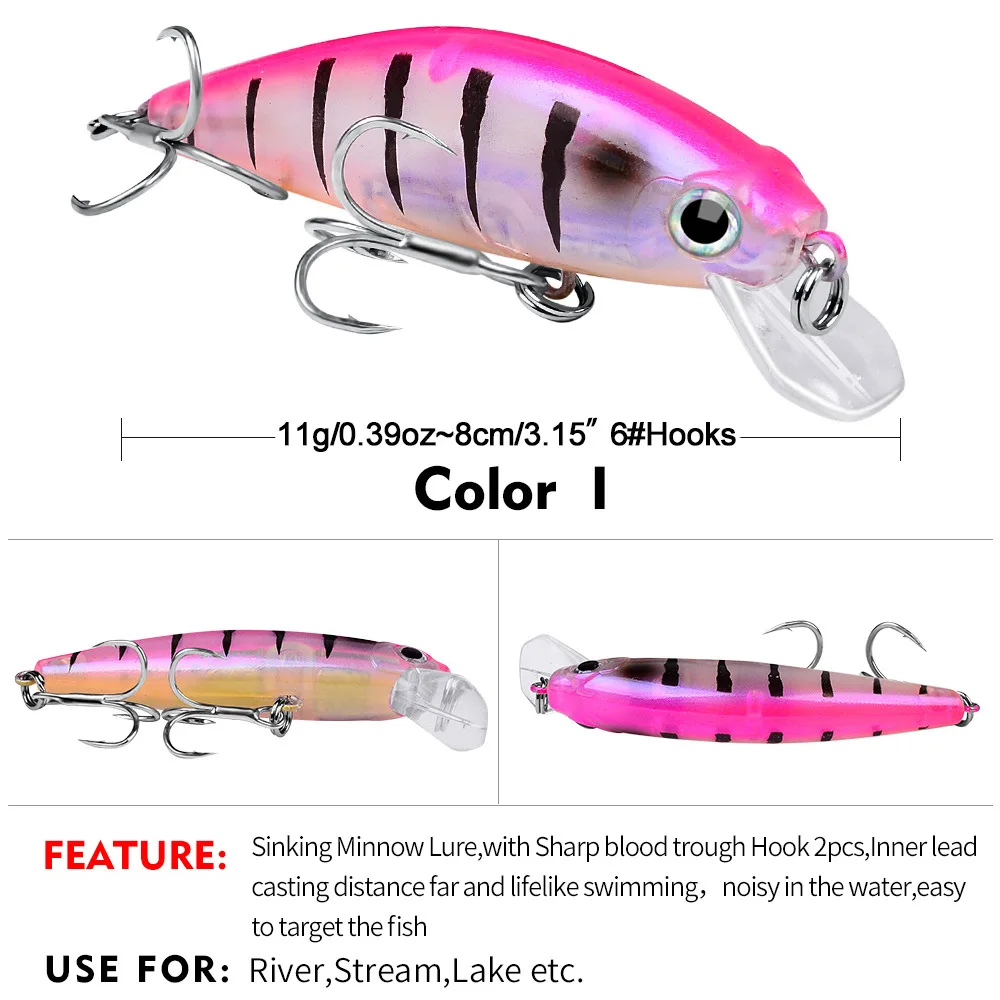 Luya Bait 8cm Cebo de plástico pequeño y gordo 11g Suministros de pesca con cabeza de serpiente Gancho Afilado Práctico Hombre duro Debe tener