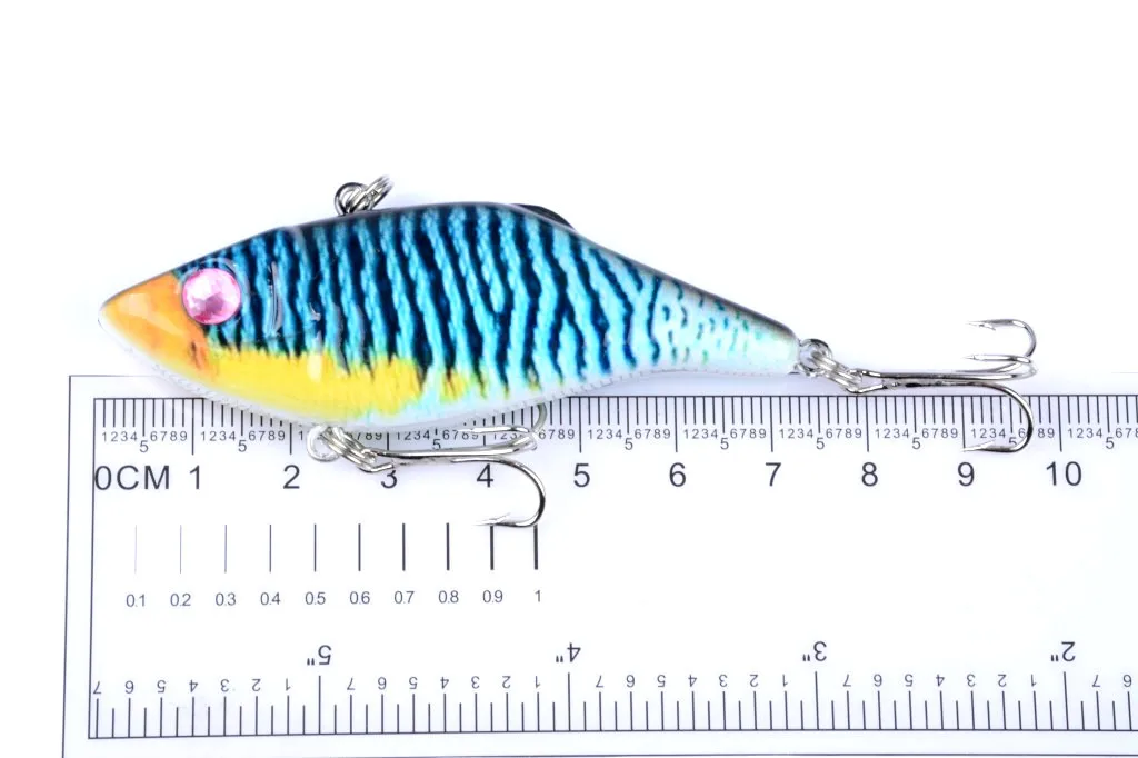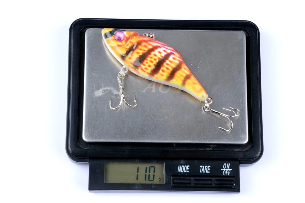 Luya cebo con revestimiento de plástico, capa de natación completa UV, cebo de plástico con estampado en caliente, Vib7cm/11g, cuentas de anillo de cebo biónico