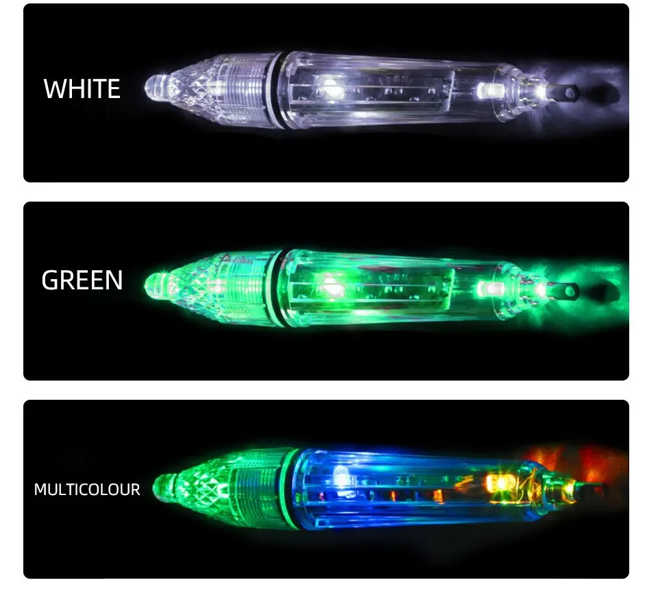 【Amplia gama de usos】:Las luces de pesca profunda se pueden utilizar para colgar muelles, embarcaciones y conectarse a líneas de pesca.Adecuado para pesca nocturna/diurna, pesca con cebo y pesca profunda.Compatible con otros equipos de pesca, como plataformas de pesca, plantillas de pesca, palas de pesca, corchos emergentes y flotadores iluminados.
