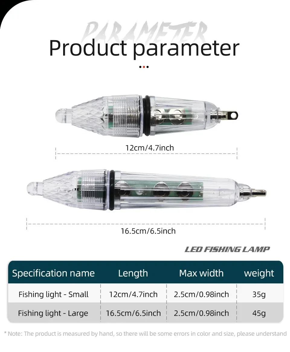 Luz LED de caída profunda para pesca nocturna, señuelo de calamar, lámpara de señuelo de pesca submarina en aguas profundas con batería