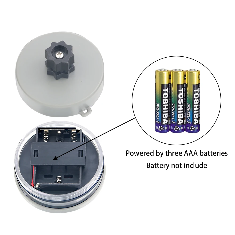 2)No se requieren cables. Alimentado por tres pilas AAA (no incluidas). Las baterías se pueden instalar o reemplazar girando la parte superior de la luz.
