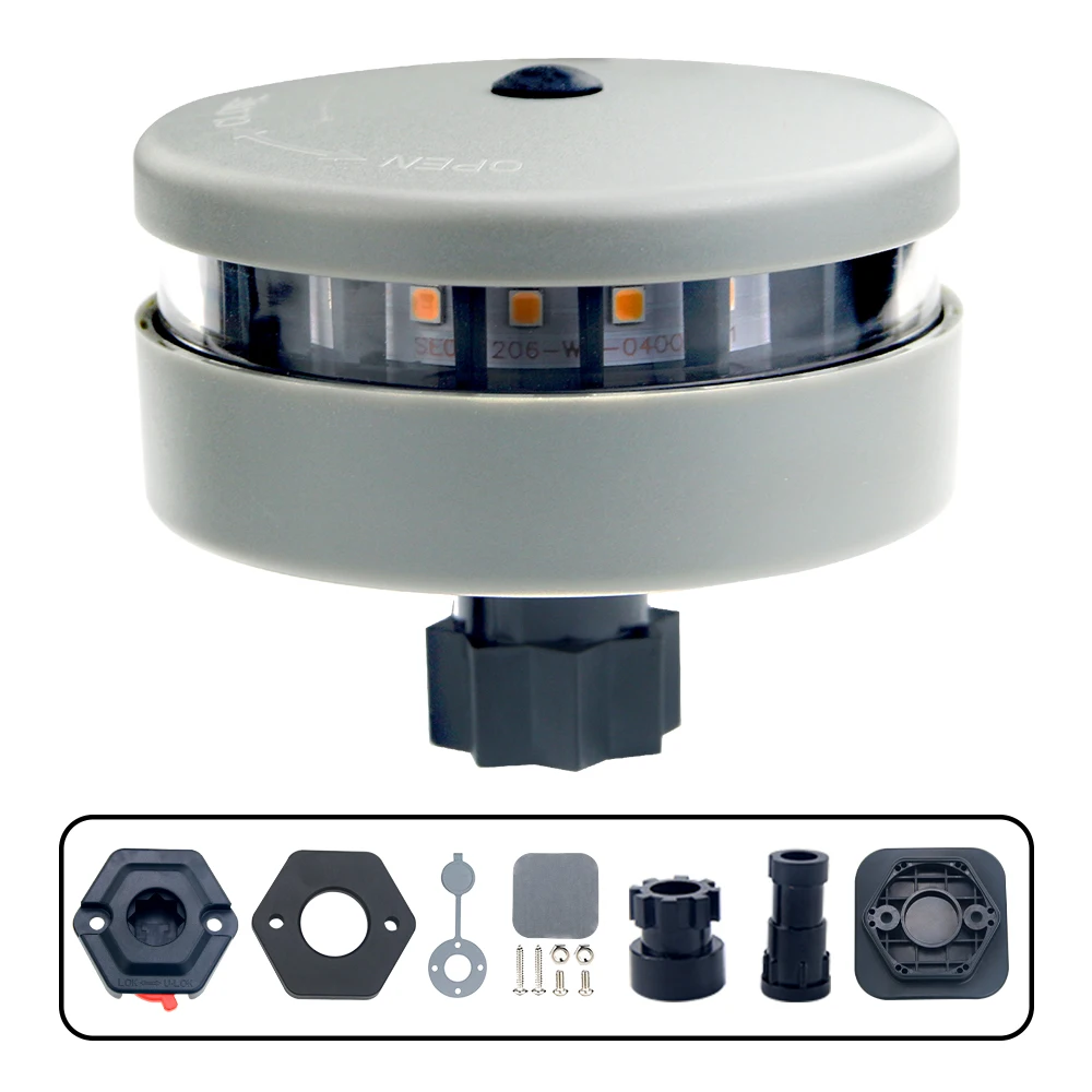 La luz de navegación blanca se puede utilizar como luz de navegación completa o luz de señal. Tiene brillo continuo y modo de flash.