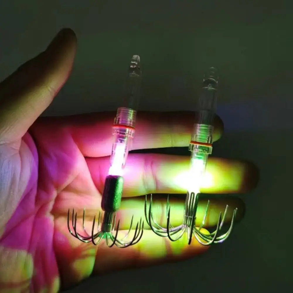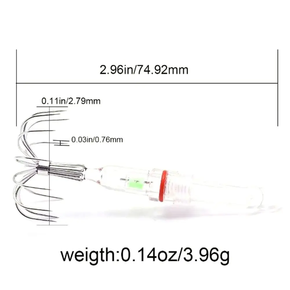 Luminous Squid Jig Hooks: These hooks emit a vibrant glow that attracts squid and enhances your chances of a successful catch. Underwater Squid Fishing Light: This fishing light illuminates the underwater environment, attracting squid and making them easier to spot and catch. Easy to Use with Anti-Corrosion Materials Lamp Tools: These lamp tools are made with good-quality, anti-corrosion materials, making them easy to use and ensuring their longevity. Suitable for Various Environments: These fishing accessories are suitable for use in different environments, whether it's freshwater, saltwater, or even ice fishing. Suitable for Bass Yellow Perch: These fishing lures are specially crafted to attract bass and yellow perch, increasing your chances of a successful catch. Material: Plastic Size: 8*3cm Package Included : 1 PC LED Lure Light with hook Notes: Due to the light and screen setting difference, the item's color may be slightly different from the pictures. Please allow slight dimension difference due to different manual measurement