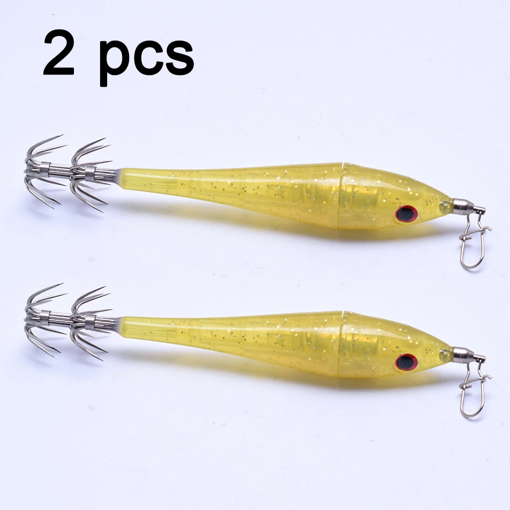 Luz de calamar subacuática de 2 piezas con ganchos de calamar afilados de doble capa