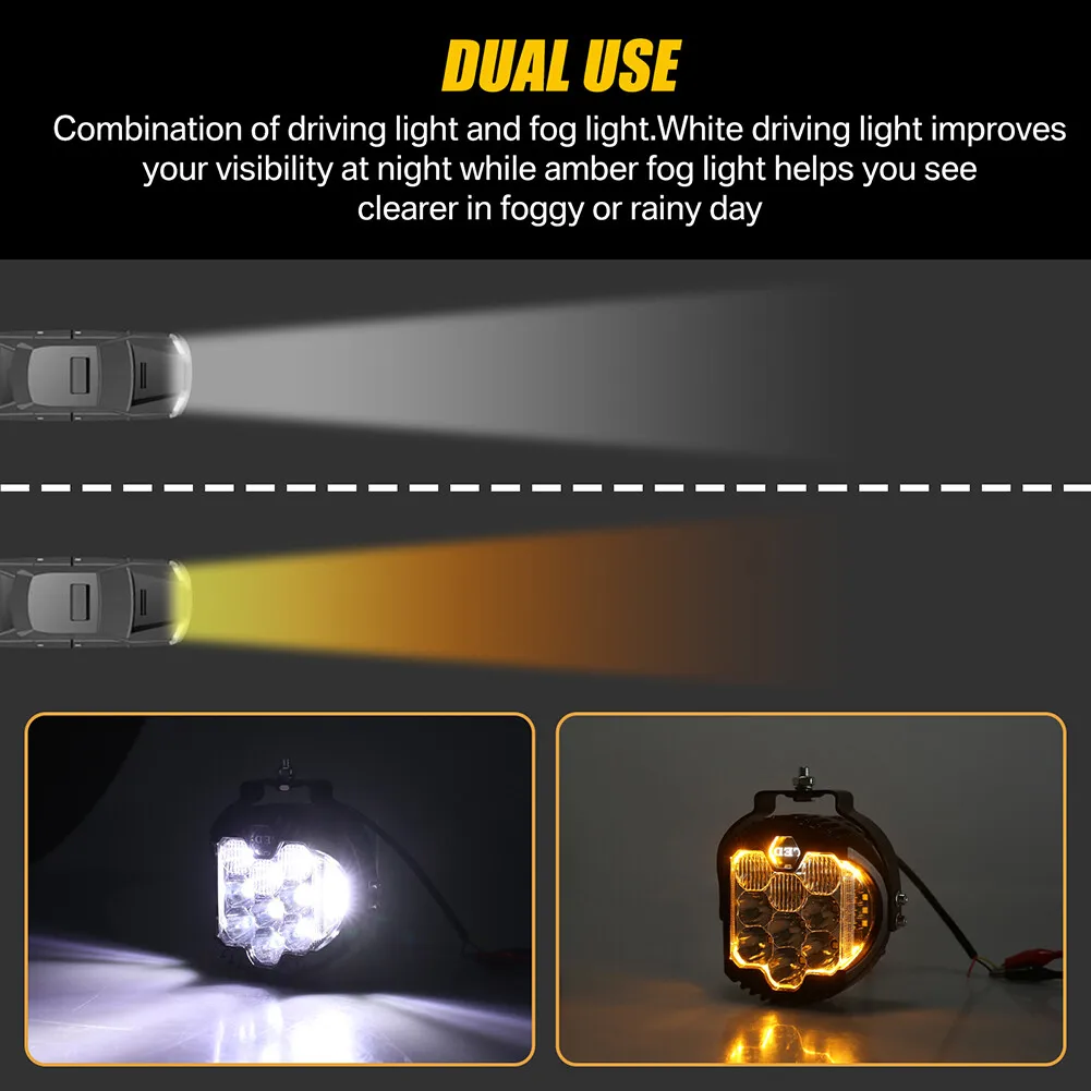 ALTO BRILLO: Las burbujas están hechas con chips LED de intensidad y alta calidad, 5w/led, iluminación clara y parpadeo en el lado ámbar respectivamente.