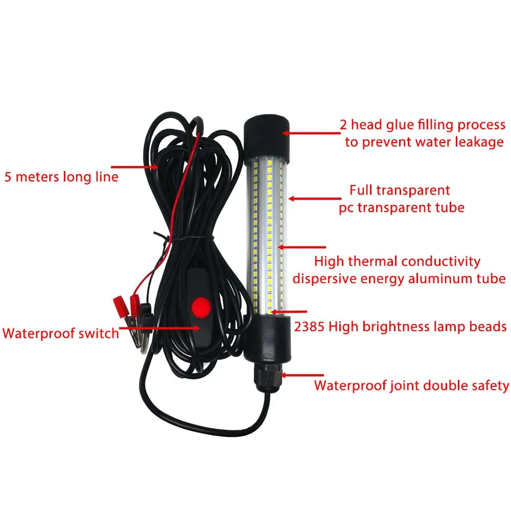 Luz de pesca LED de alta potencia, dispositivo de recolección de peces subacuático, luz para atraer peces, accesorios para equipos de pesca