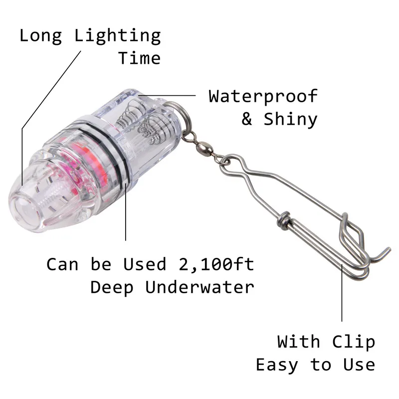 4.Luz nocturna de pesca hecha de material de primera calidad, resistente, antioxidante, liviana y fácil de transportar.Puede funcionar correctamente hasta 2.100 pies bajo el agua.