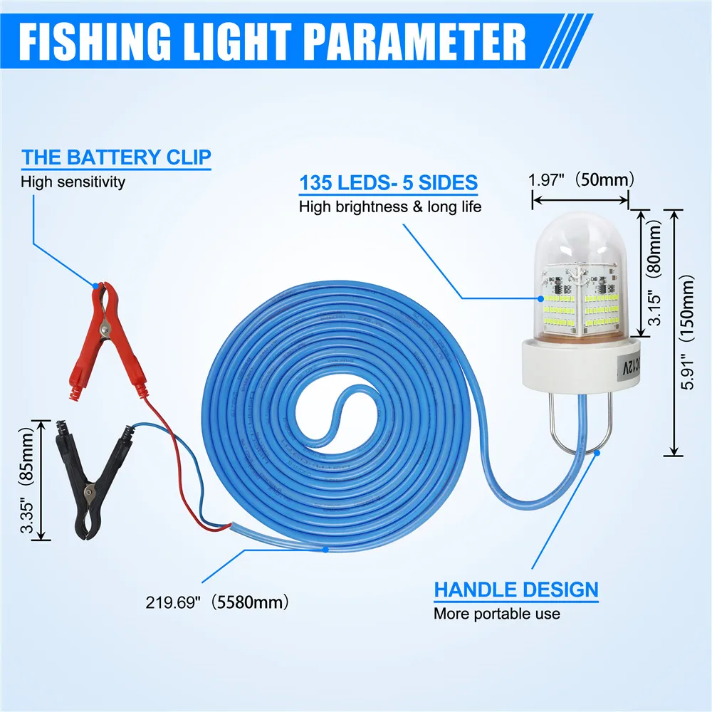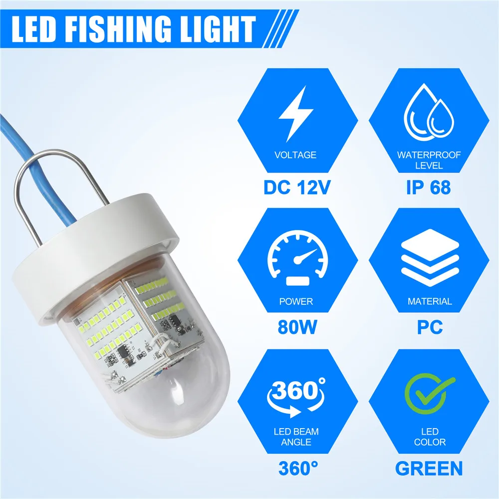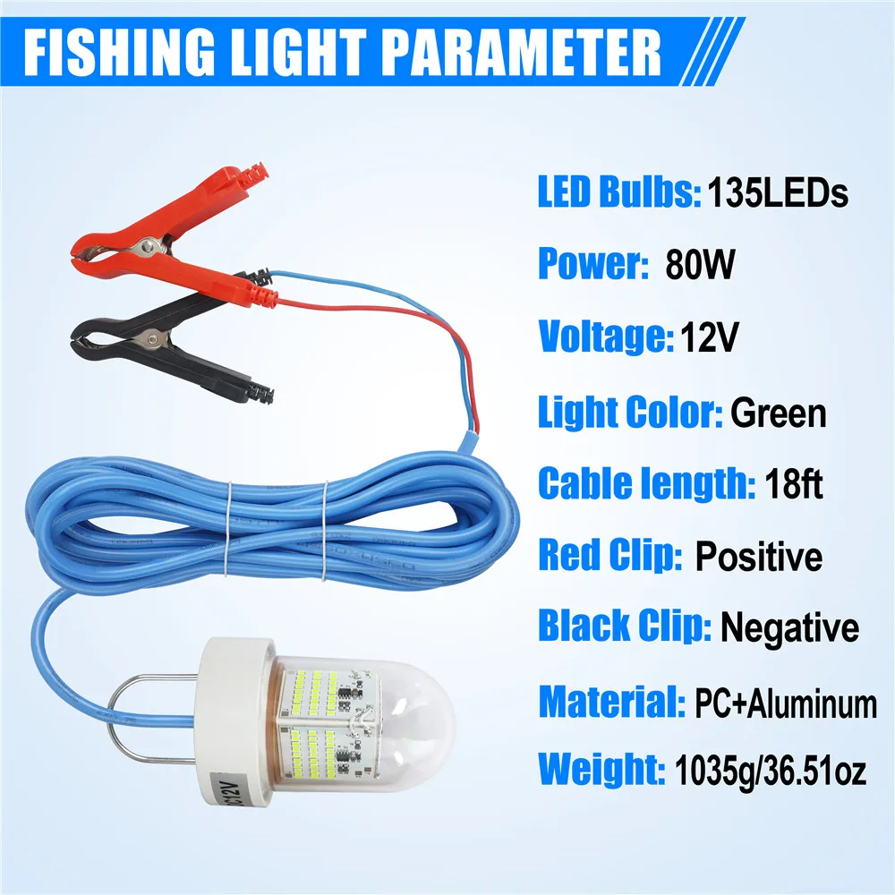 1. 80 vatios, brillo superbrillante de 135leds, brillante con buena penetrabilidad, luz de pesca LED de 360 ° (vista de 360 grados); Atrae gambas, calamares, y pesca en tu lugar favorito con estas luces de pesca LED superbrillantes