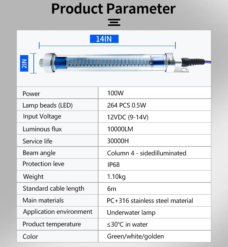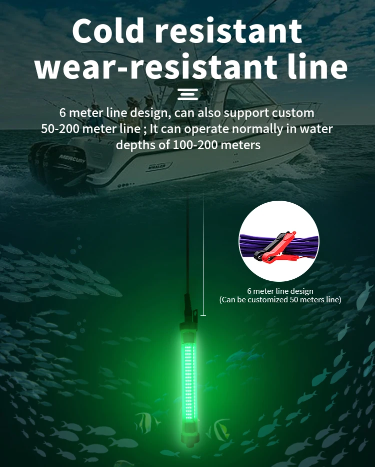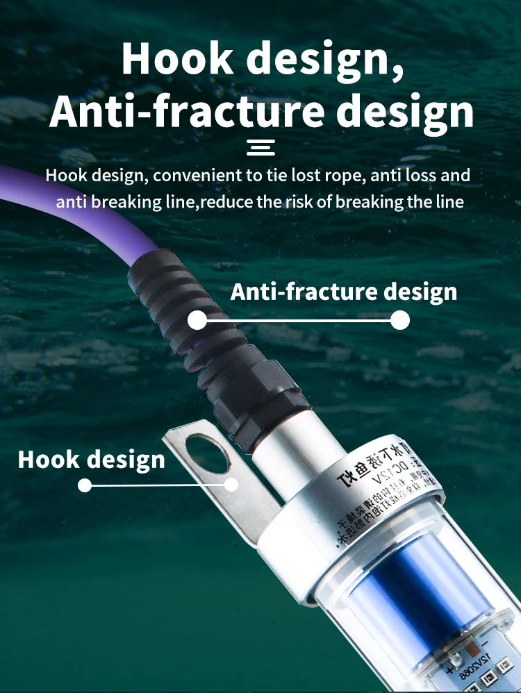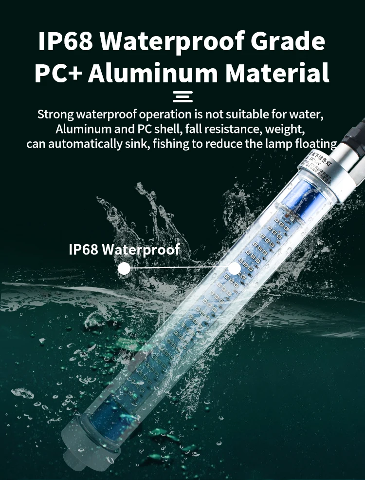 ● Aluminio con carcasa de PC, resistente a caídas, el aluminio es bueno para disipar el calor, tiene peso y puede hundirse automáticamente, reduciendo la luz que flota durante la pesca;