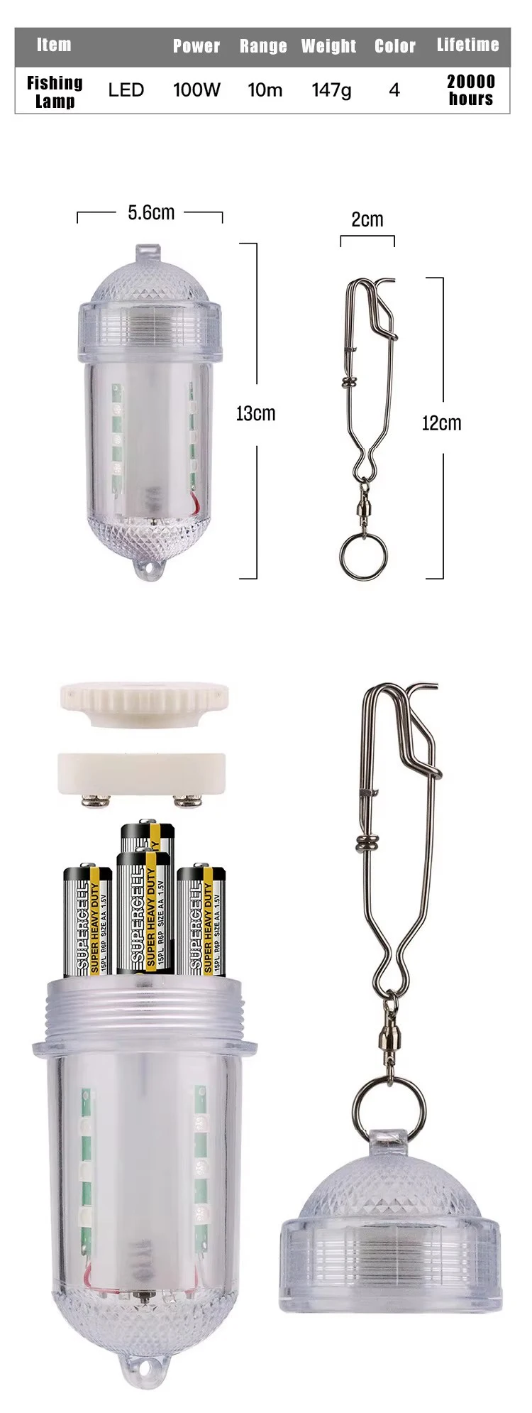 Descripción generalTrampa para encontrar peces de 12 LED, lámpara luminosa de mar profundo, atractivo de pesca nocturna subacuática, señuelos, luces, cebo de pesca, herramienta de pesca