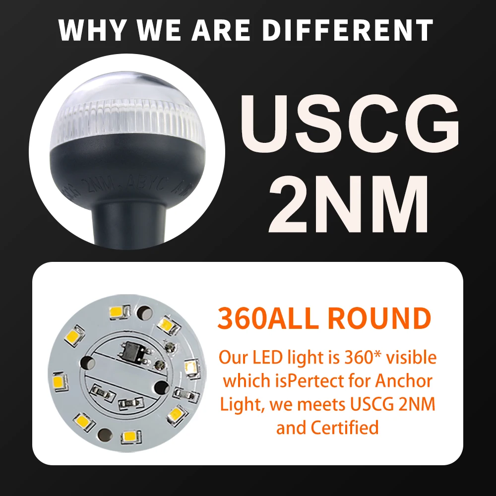 Certified by the USCG for a visibility range of 2 nautical miles (approximately 3.7 km), it emits a bright white anchor light to keep you safe during nighttime navigation.