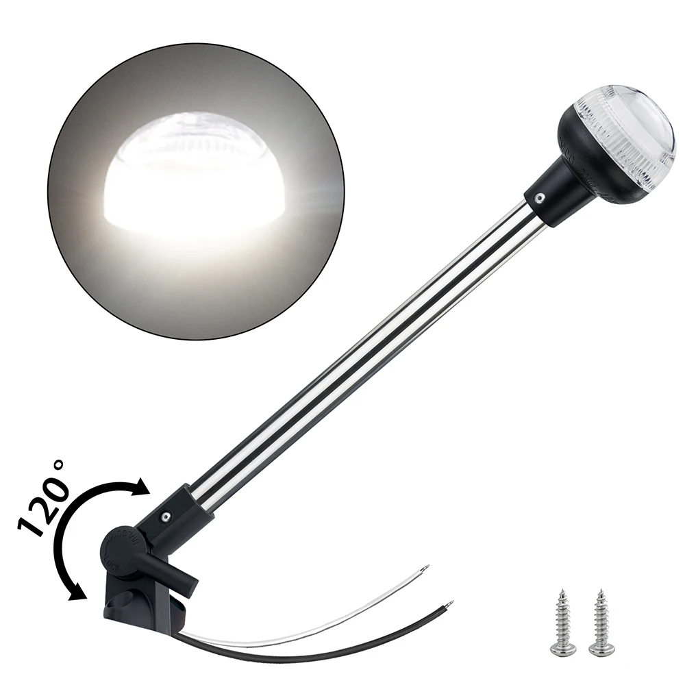 Ensure your vessel is visible on the water with this Stern Light, Bimini Top Light, Pontoon Boat Navigation Light,Anchor light,Designed for outdoor use, this compact yet powerful LED light is waterproof and comes with a folding base for easy installation. Certified by the USCG for a visibility range of 2 nautical miles (approximately 3.7 km), it emits a bright white anchor light to keep you safe during nighttime navigation. Powered by a 12-volt system,Measuring 16 inches (40.6 cm) in length, this navigation light is a must-have accessory for any pontoon boat or watercraft, providing peace of mind and adhering to maritime regulations.