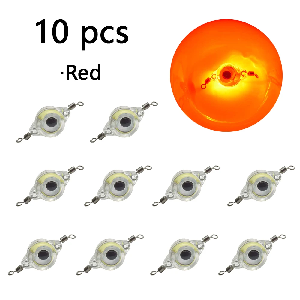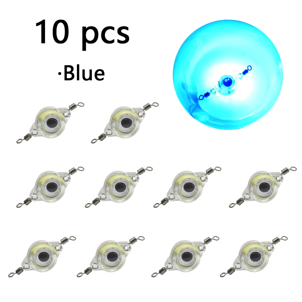 Luz de señuelo subacuática simulada LED, cebo de ojo de pez, con anillos giratorios en ambos extremos, luz de pesca impermeable, 10 piezas