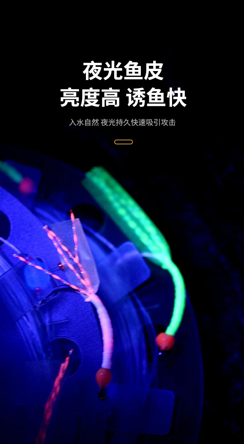 M&W Pesca en el mar, croaker amarillo grande, cuerda de goma luminosa, juego de pesca con doble gancho, cebo con señuelo vivo