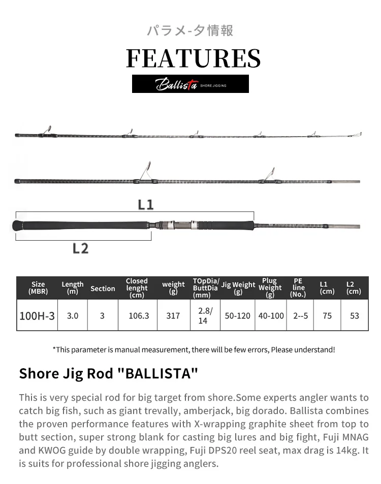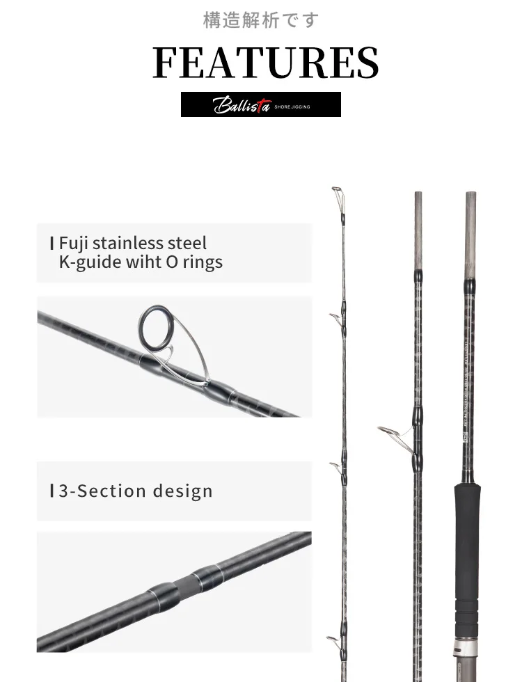 MADMOUSE BALLISTA Shore Jigging Rod 3.0m100H Portátil Tres Secciones Piezas completas FUJI Peso de plantilla 50-120g PE2-5 Ocean Rod