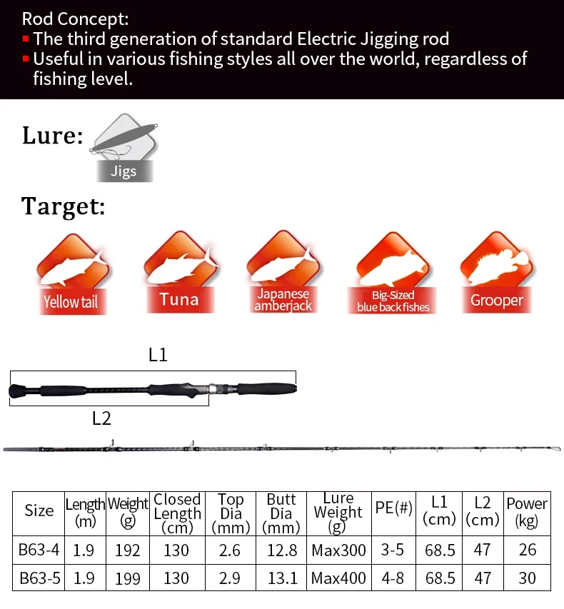 MADMOUSE-caña de pescar eléctrica ultraligera para agua salada, caña de pescar de 1,9 m, 26-30kg, carbono alto
