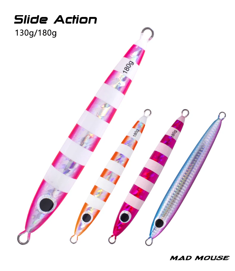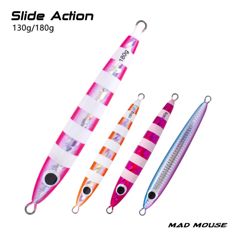 MADMOUSE-Cebo luminoso de plantilla lenta, señuelo de pesca Jigging de metal, brillo de cebra, 130g, 180g