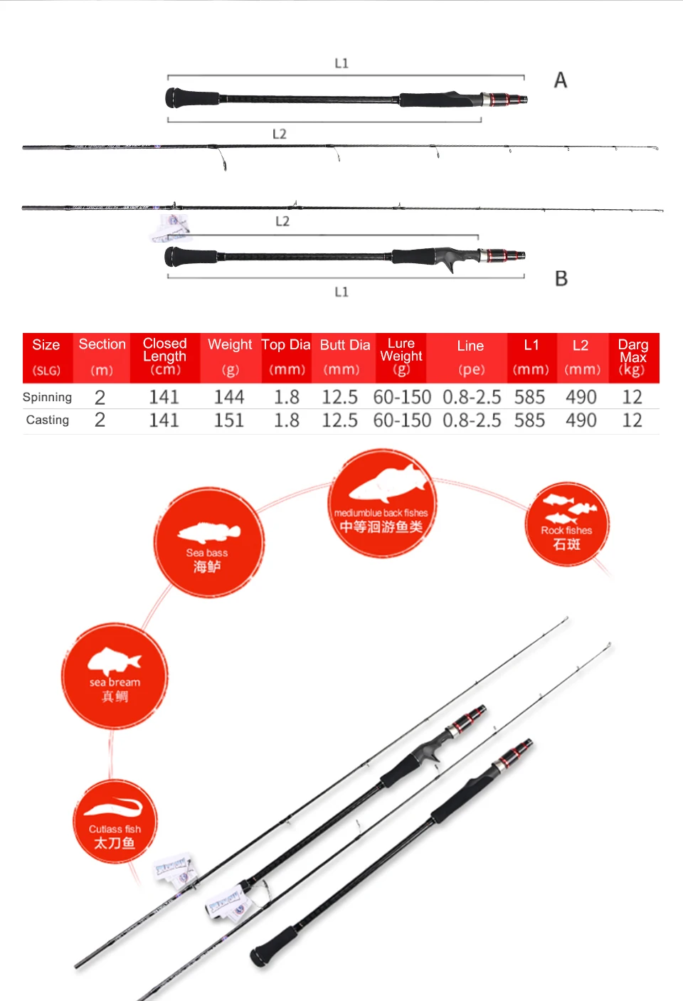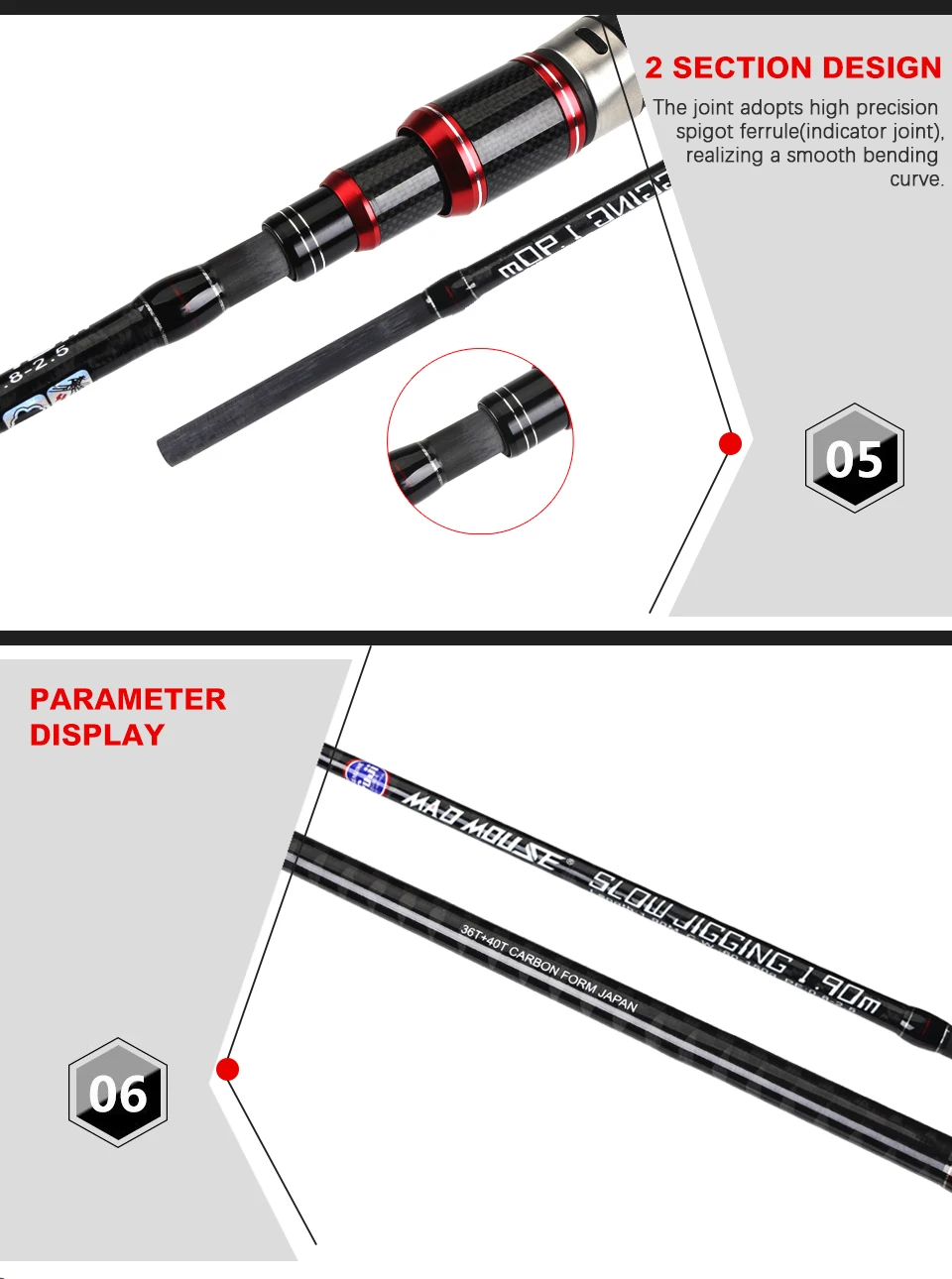 MADMOUSE nuevo Japón completo Fuji Farts caña de Jigging lento 1,9 M 12 kg peso de plantilla 60-150g caña de Jigging ligera caña de barco caña de pescar en el océano