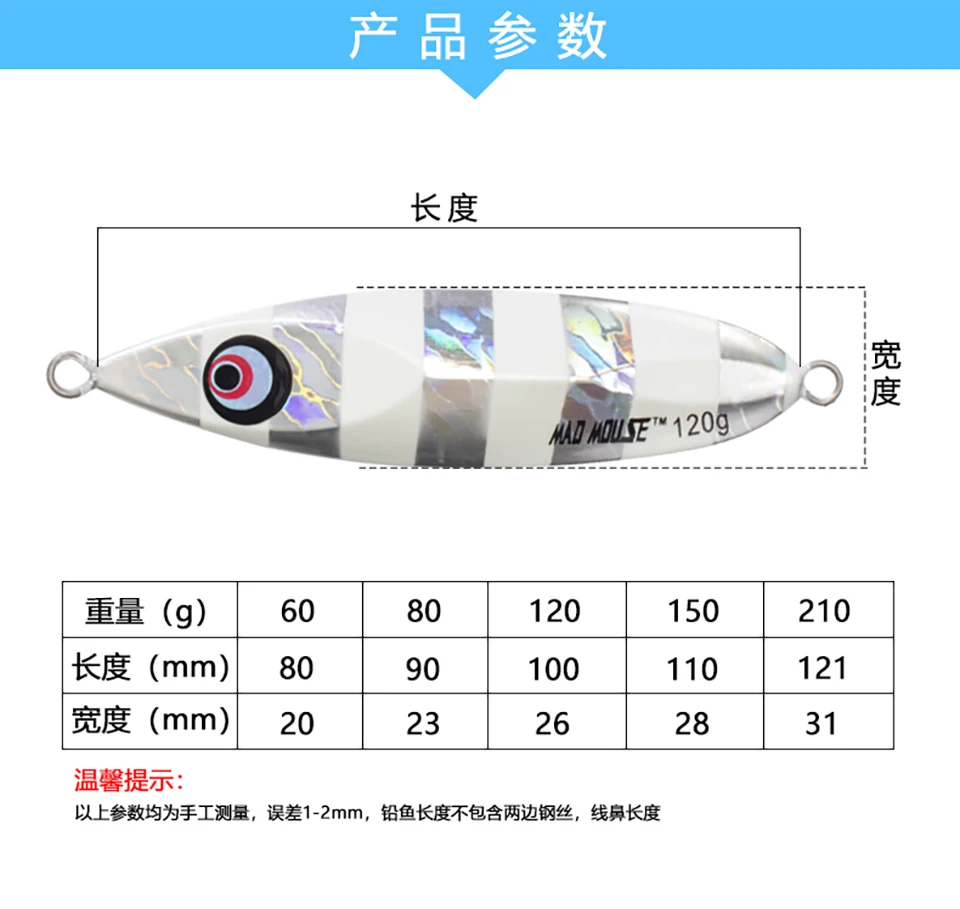 MADMOUSE-señuelo de plantilla de metal Artificial, plantilla de pesca luminosa para aguas profundas, plantilla de pesca lenta, 60g, 80g, 120g, 150g, 210g, jigs