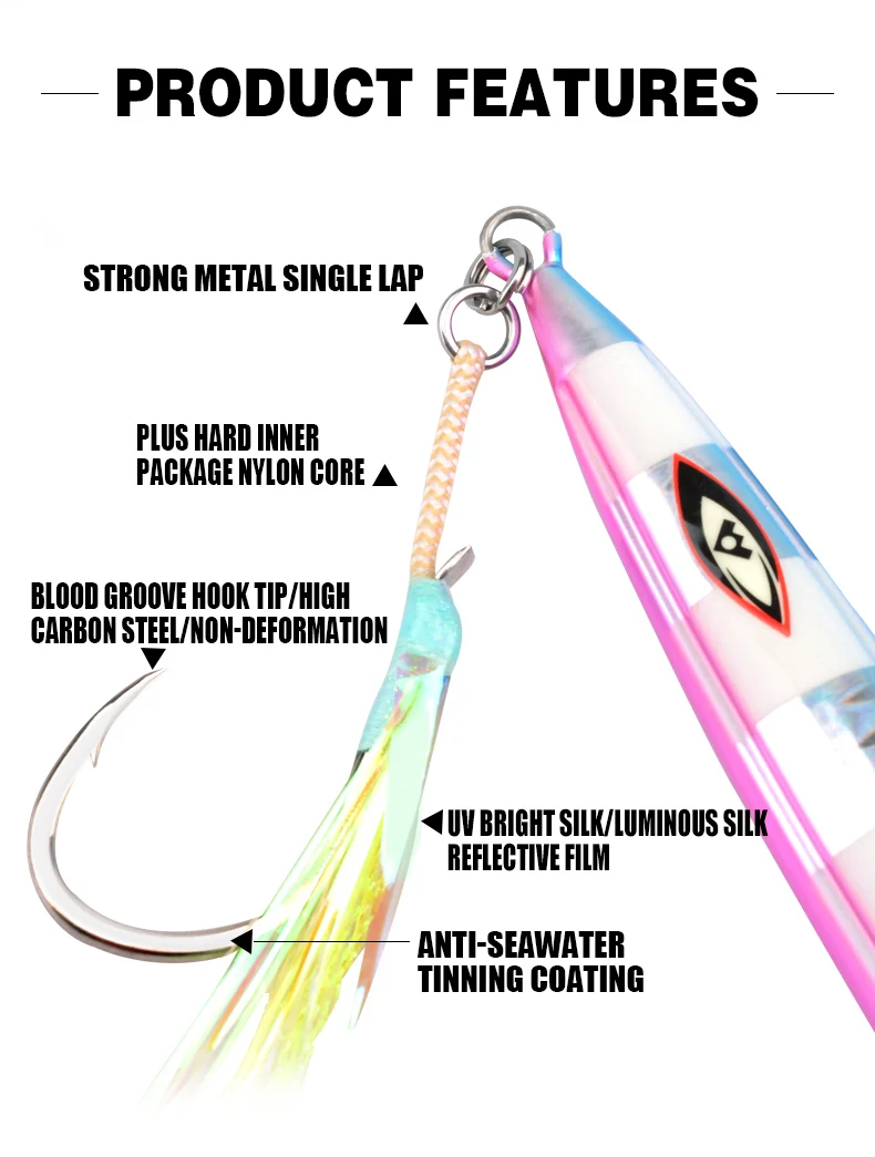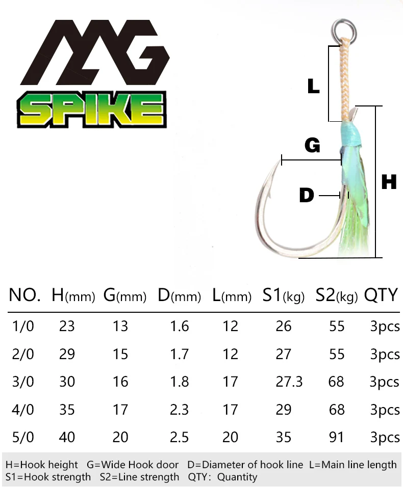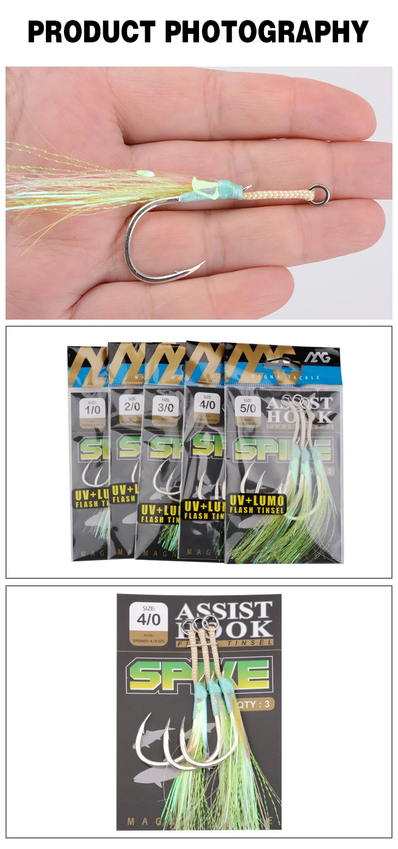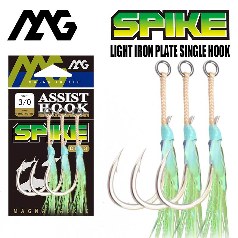 MAG-anzuelo de pesca de SPSN02-GTL, anzuelos de una sola plantilla, 1/0, 2/0, 3/0, 4/0, anzuelos de Jigging lento, anzuelos de pesca