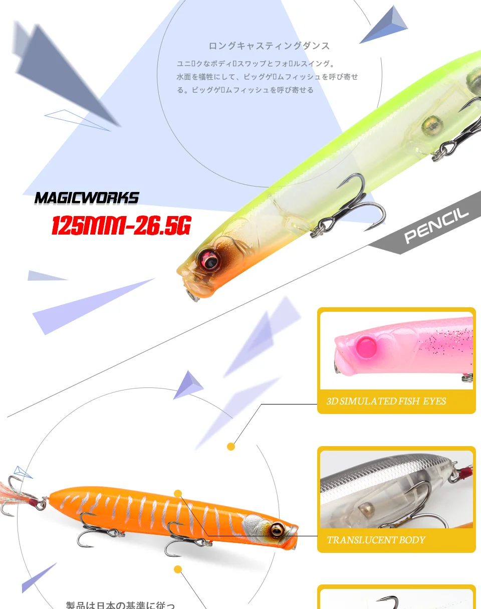 Magic Works 125mm 26.5g lápiz flotante pesca Topwater pasear al perro señuelo Wobblers cebo Artificial lubina superficie Walker Señuelos