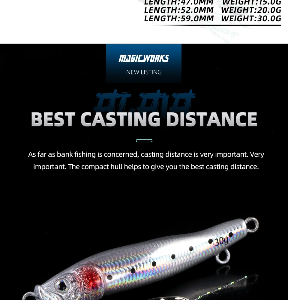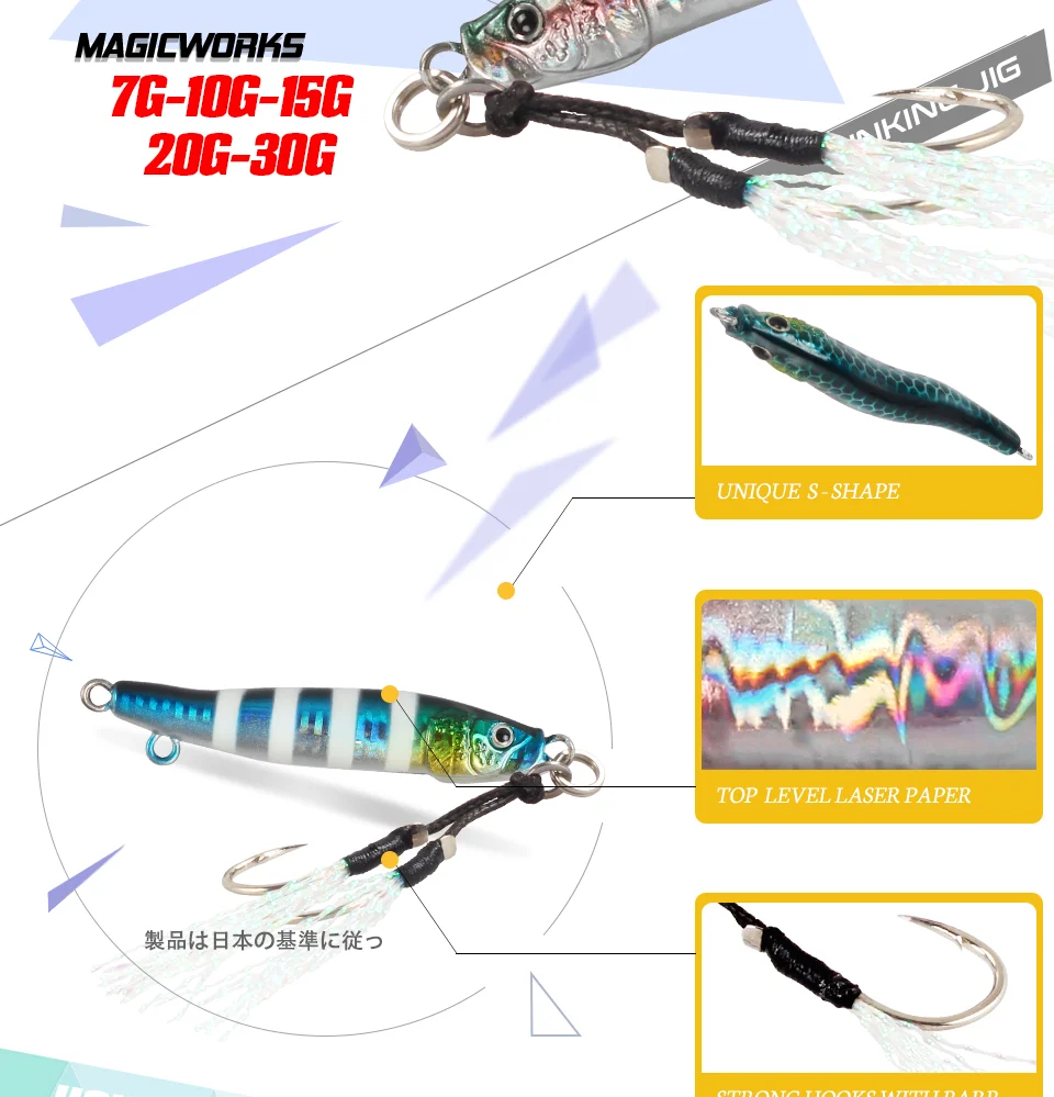 Magic Works 7G 10G 15G 20G 30G Señuelos de pesca de metal Pesca Nuevo 2024 cebos de perca aparejos de pesca cebo Artificial Jig Señuelos de pesca