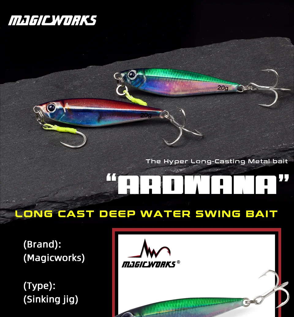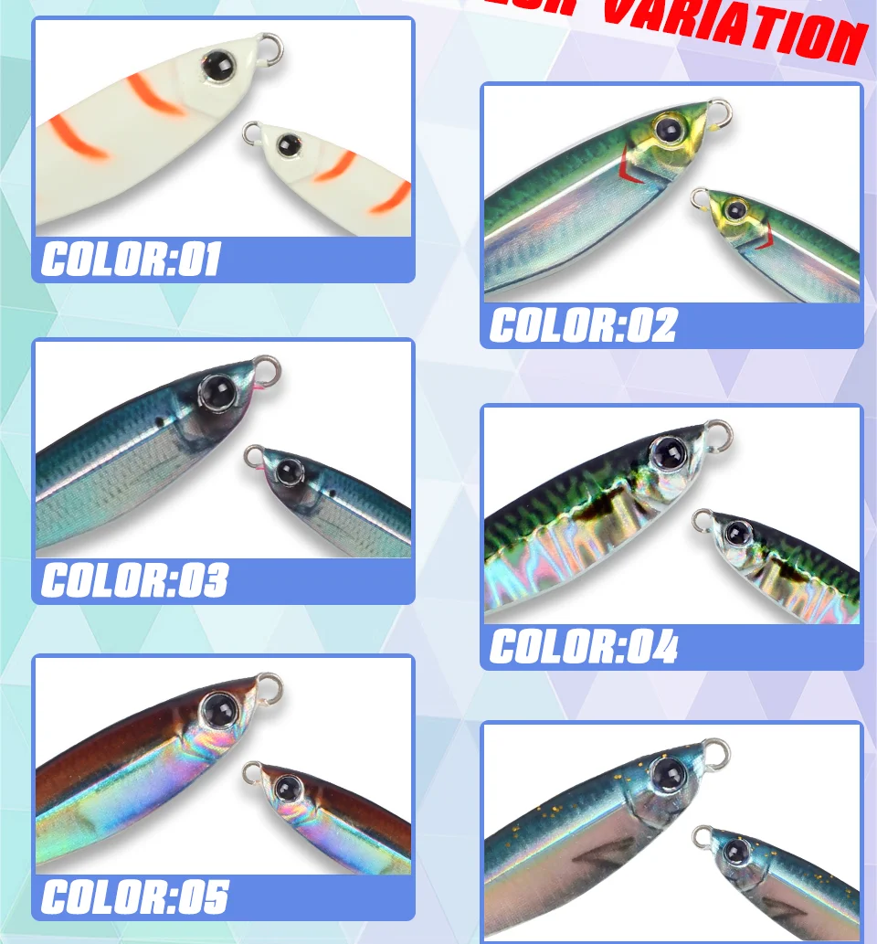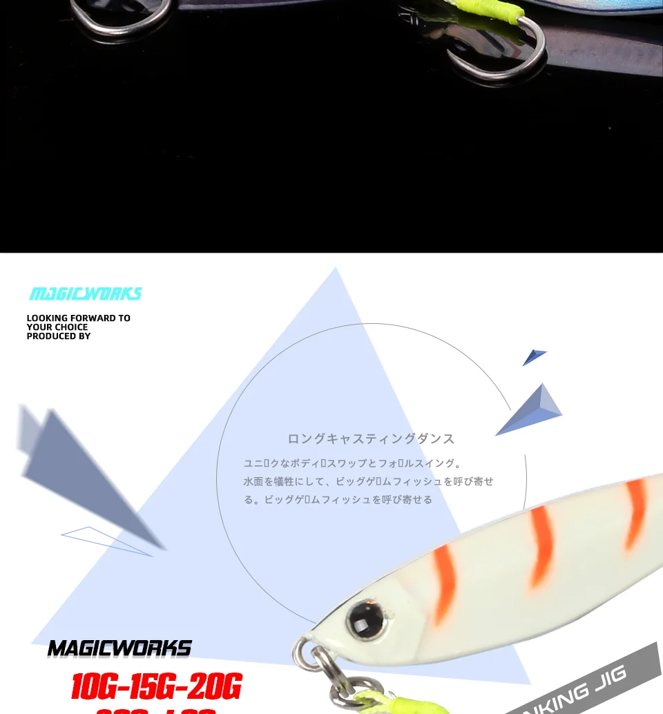 Obras mágicas Jig de metal Cebo artificial 10g 15g 20g 30g 40g Suministros de pesca Cebo de pescado Jigs Woblery Señuelo de agua salada para lubina