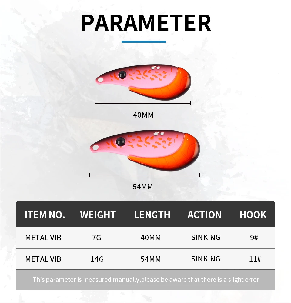 MAGIC WORKS Metal VIB Camarón 7G 14G hundimiento cebos de vibración hoja señuelo de pesca lubina cebo Artificial Swimbait aparejos de pesca