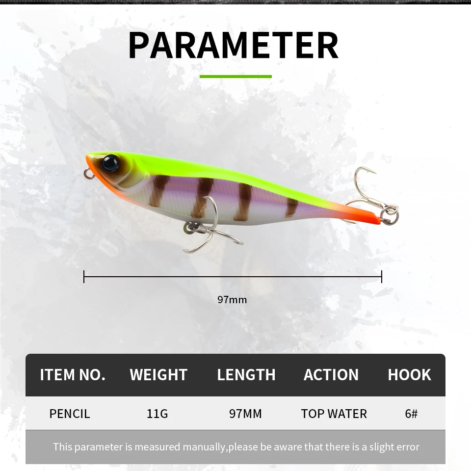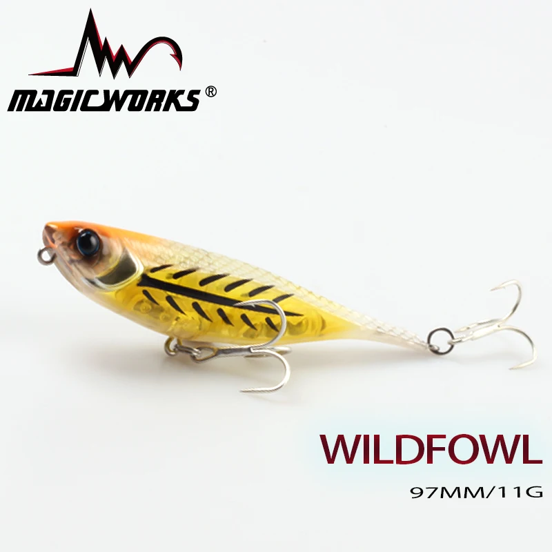 MAGIC WORKS 97mm/11g señuelos de lápiz flotante Señuelos de Pesca cebo de plástico ABS cebo duro Artificial aparejos de pesca 8 colores agua superior