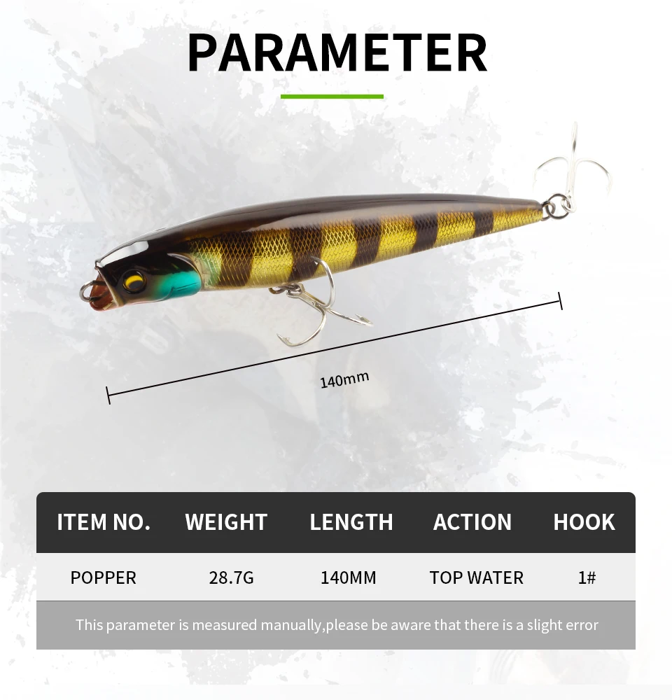 MAGIC WORKS 140mm/28,7G POPPER, señuelo de pesca de agua superior, carrera en forma de S, plástico ABS, cebo duro Artificial, aparejos de pesca, 8 colores