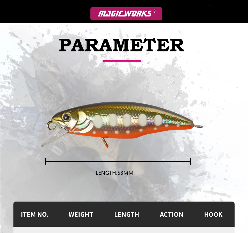 MAGIC WORKS 53mm 4G hundimiento Minnow señuelo de pesca trucha Crankbait Artificial Jerkbait cebo duro Pike Wobbler aparejos de pesca