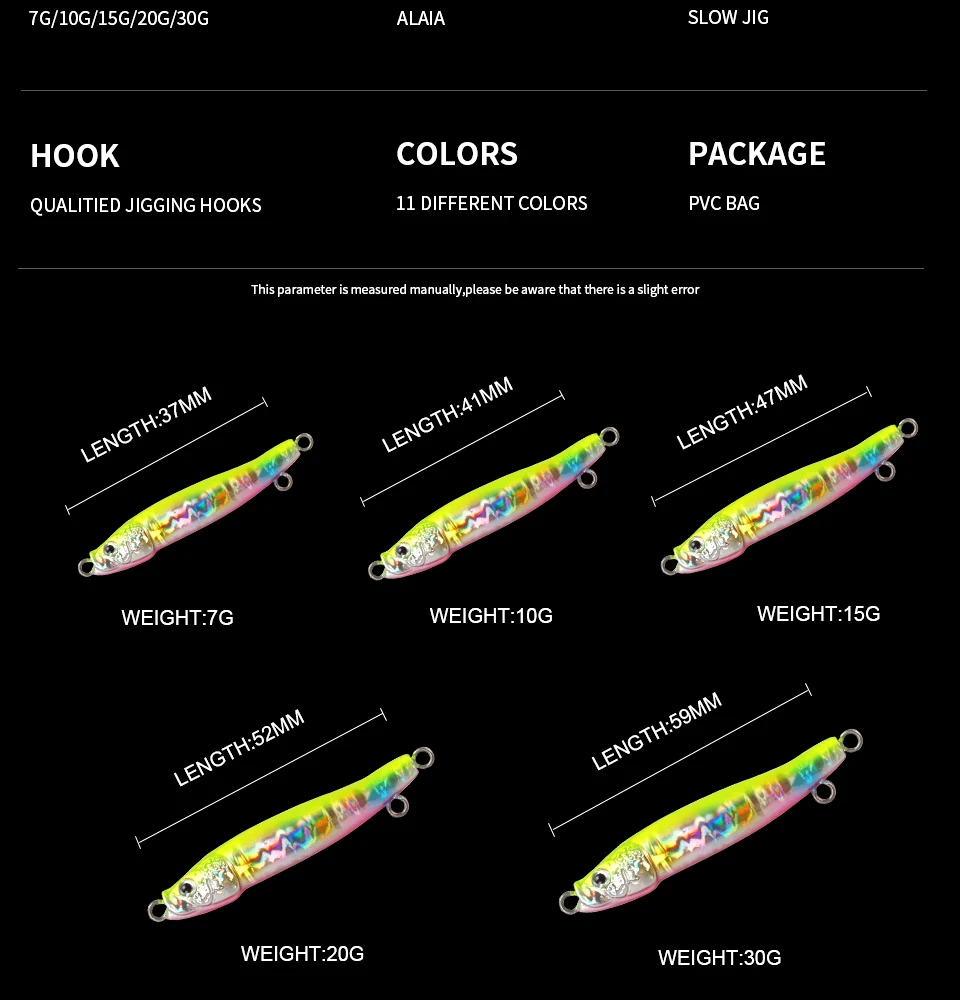 Peso: 7g/10g/15g/20g/30g