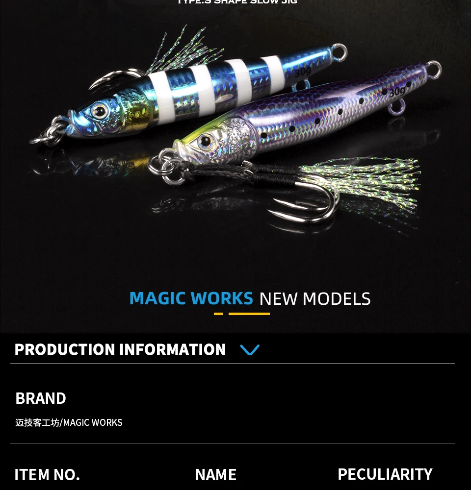 Magic Works señuelo de pesca con plantilla de Metal, 7g, 10g, 15G, 20G, 30g, plantilla profesional en forma de S para pesca, cebo Artificial, aparejos de pesca