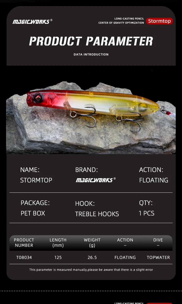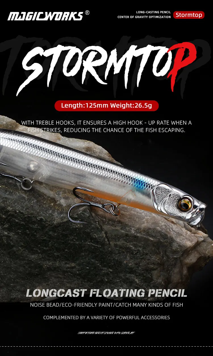 MAGIC WORKS 125mm 26,5g señuelo de lápiz Topwater superficie Walker Señuelos de pesca Wobblers para Lucio cebos duros cebo Artificial flotante