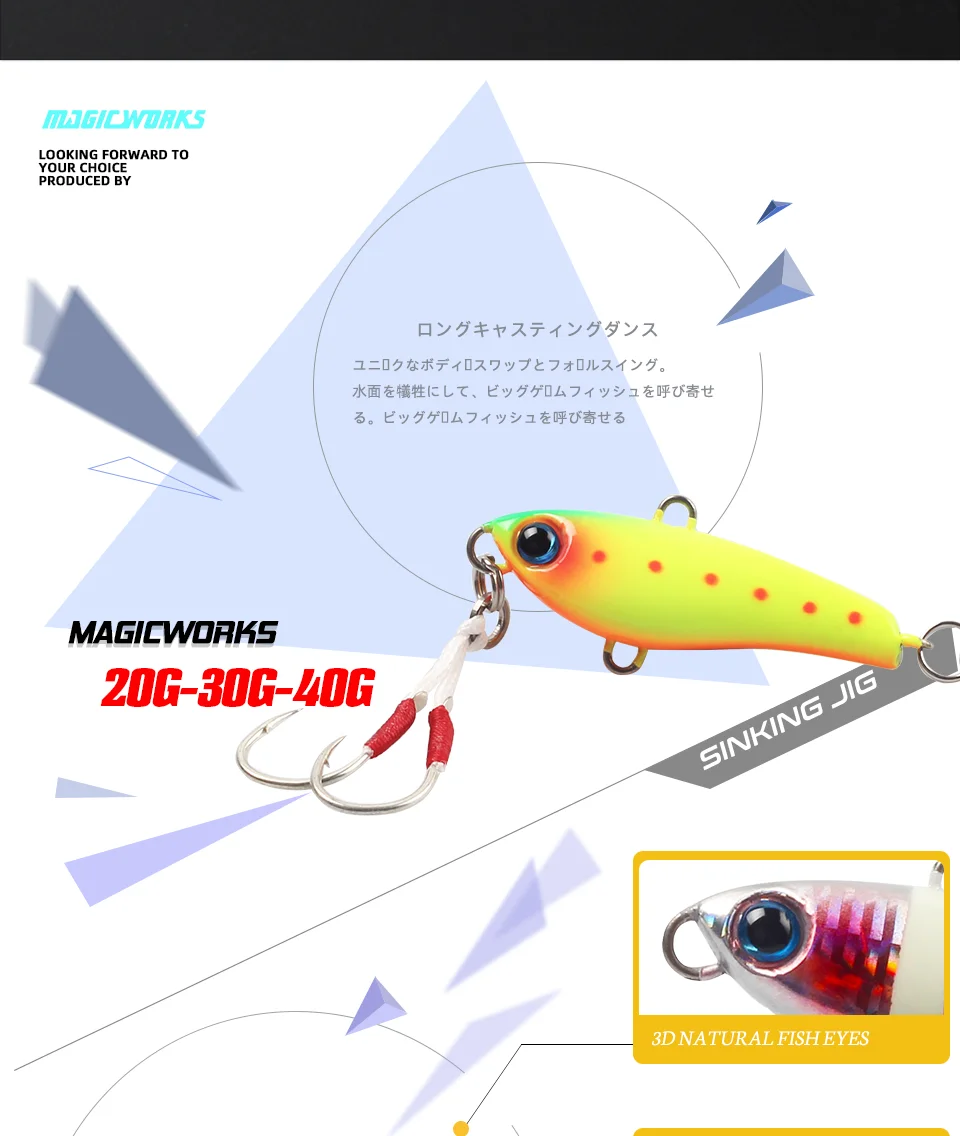Magic Works Metal Jig Tail Spinner Señuelos de Pesca 20G 30G 40G Spinning Artificial Pesca en el mar Agua salada Japonés Jigging Señuelo