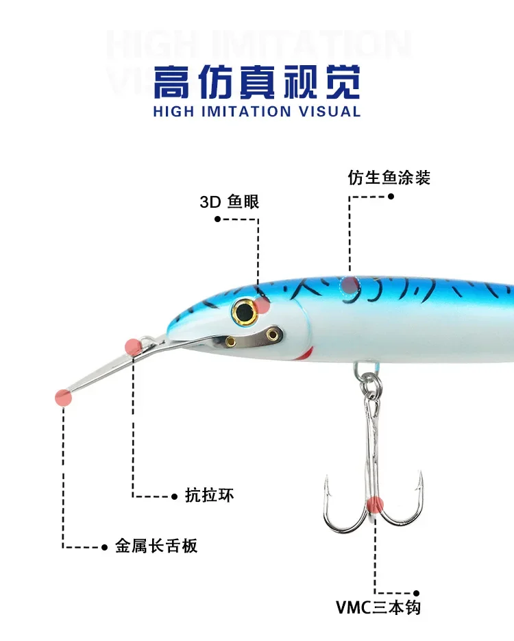 Magnu-señuelo de pesca de pececillo, cebo duro flotante para curricán, 130mm, 32,5g, Wobblers, agua salada, Artificial, atún azul