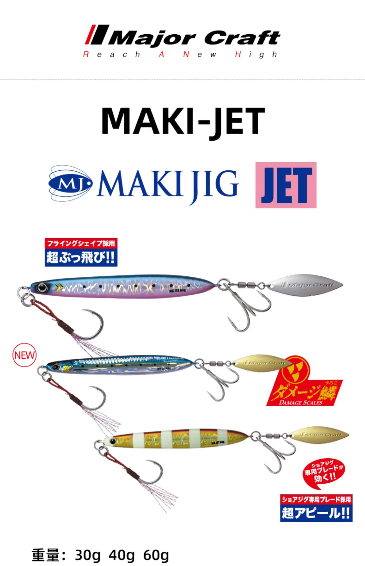 Majorcraftssea-Cebo de placa Lua de tiro ultralargo, MAKI-JET de marca de caballo de 60g con lentejuelas, cebo falso, pez de plomo