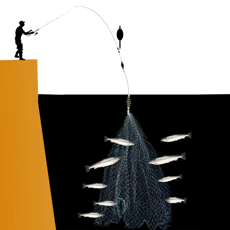 El principio es el mismo que el de la red de enmalle. Coloque el cebo en el anillo de resorte, coloque la red donde haya muchos peces y manténgala quieta, La flotabilidad abrirá la red. El cebo nebulizado atrae a los peces para alimentarse, y la red los atrapará.