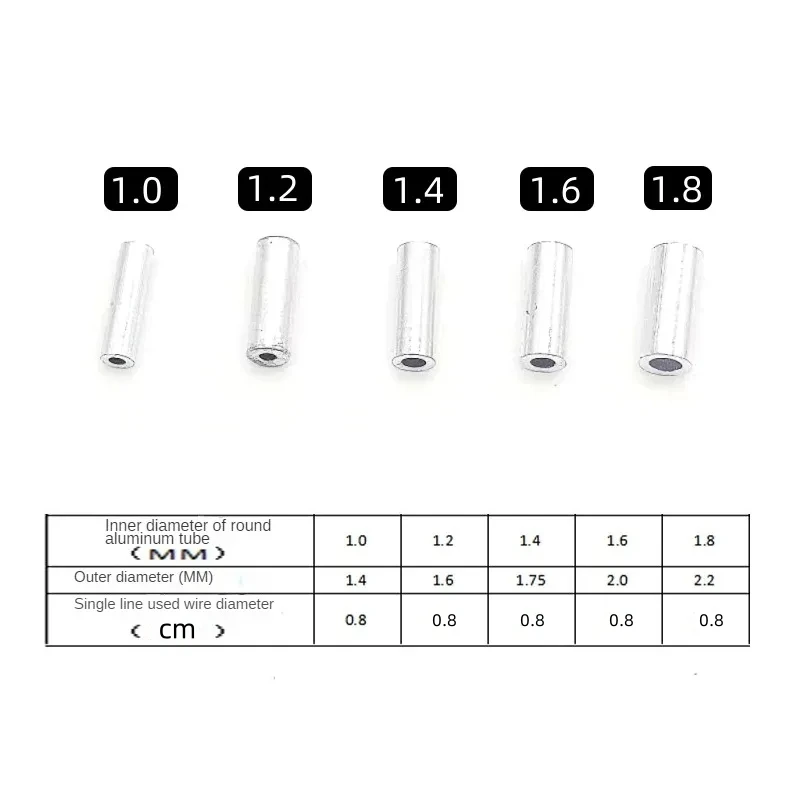 Tubo redondo de aluminio 200 piezas: 1,0x50, 1,2×50, 1,4×40, 1,6×30, 1,8×30