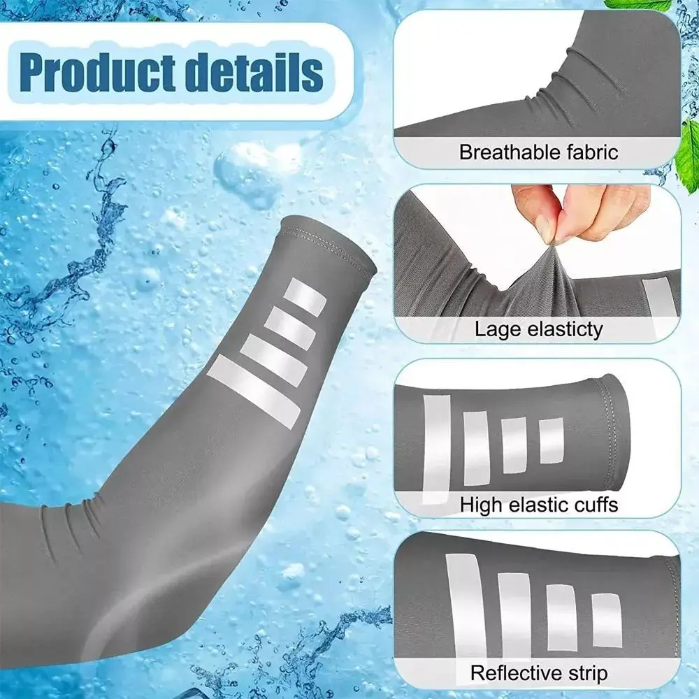 Nuevo y de alta calidad. Tipo: protector solar. Material de las mangas: Spandex/Lycra. Tamaño: 42*13*9cm. Color: como muestra la imagen. Característica:. Diseño reflectante para mejorar la advertencia en situaciones de oscuridad. Puede bloquear bien los rayos ultravioleta, y el efecto de protección solar es mejor con hermosas mangas de hielo, ir a pescar, viajar, escalar montañas, andar en bicicleta, Son sus mejores socios. El paquete incluye: 1 par de mangas. Nota: Permita errores de 1-2cm debido a la medición manual, asegúrese de que no le importa antes de realizar el pedido. Debido a la diferencia entre monitores, es posible que la imagen no refleje el color real del producto.