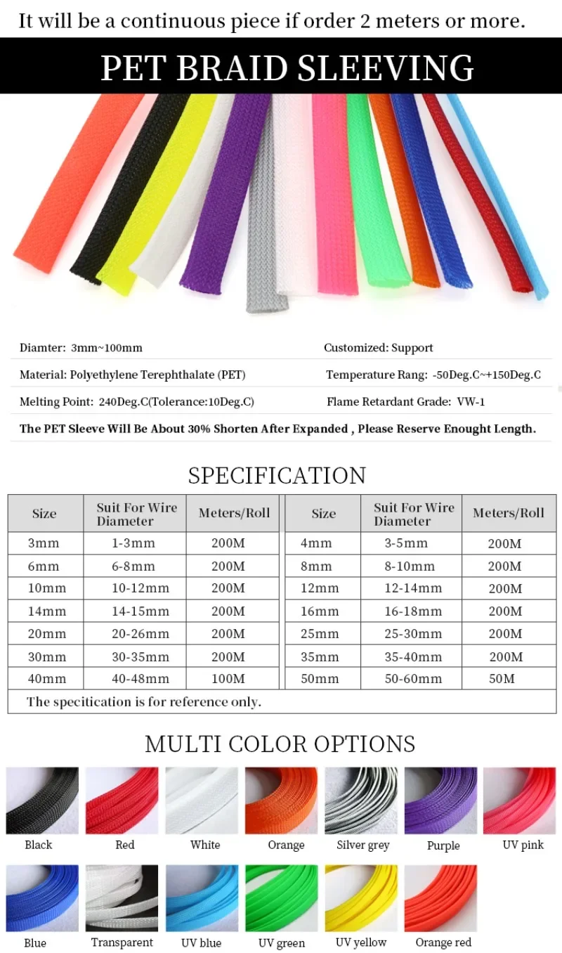 Mangas trenzadas de PET aisladas, 1/2/3/5/10/20/30/50M, 2mm, funda para Cable de alta densidad, Protector de Cable trenzado para cables