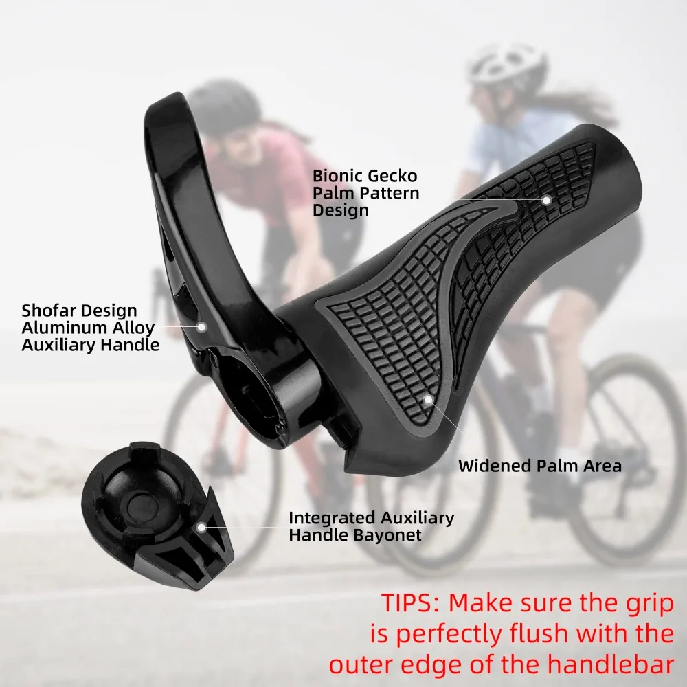 *Comfortable Ergonomic Design: This rubber handle grip is designed with a bionic gecko palm pattern, it is non-slip, even if the palm sweats, safe and stable. The widened palm area has shock absorption and super grip, helping to relieve fatigue, discomfort, or numbness from long or rough rides.